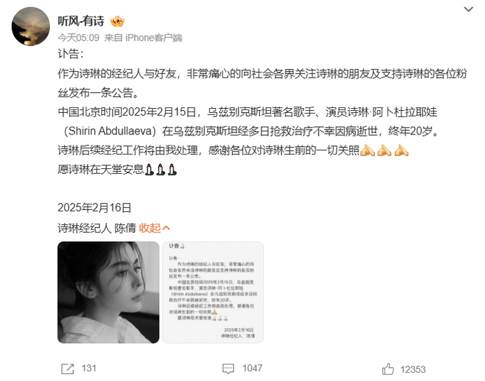 20岁女歌手突然病逝,年初一刚登上华人春晚
