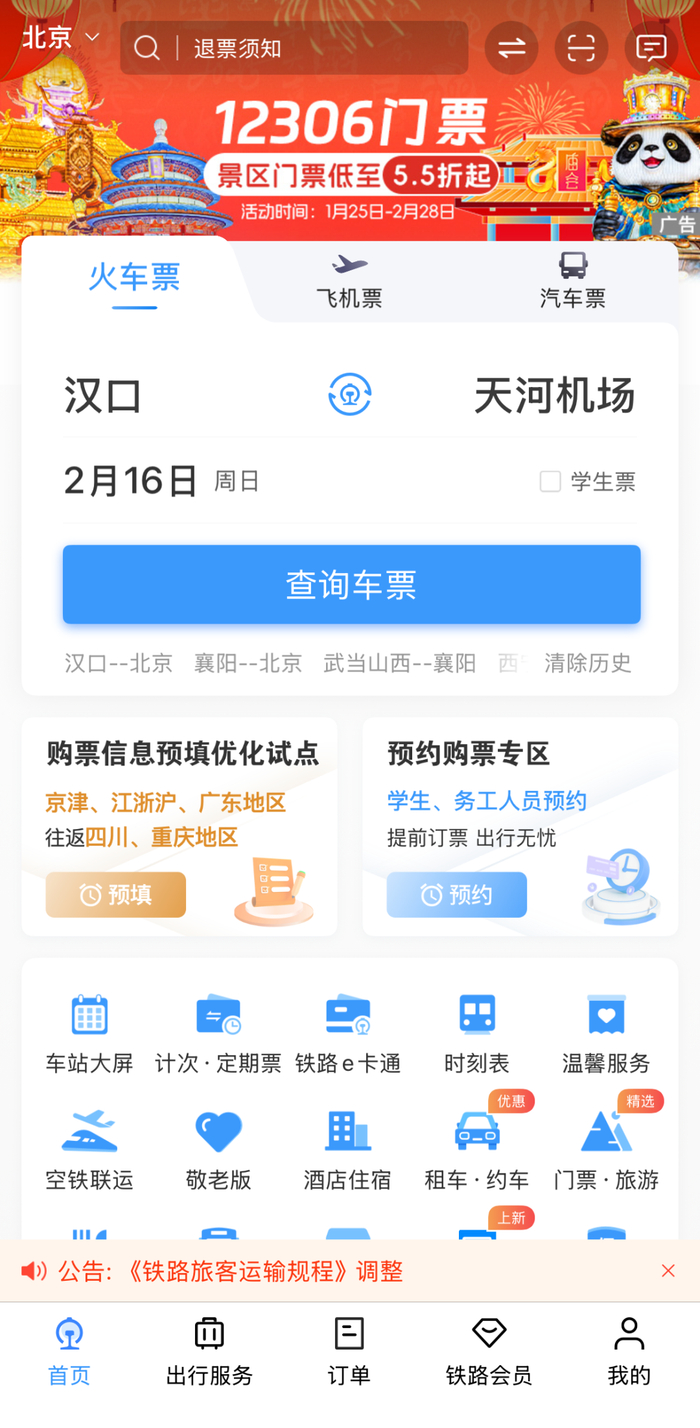 火车票购票、退改签