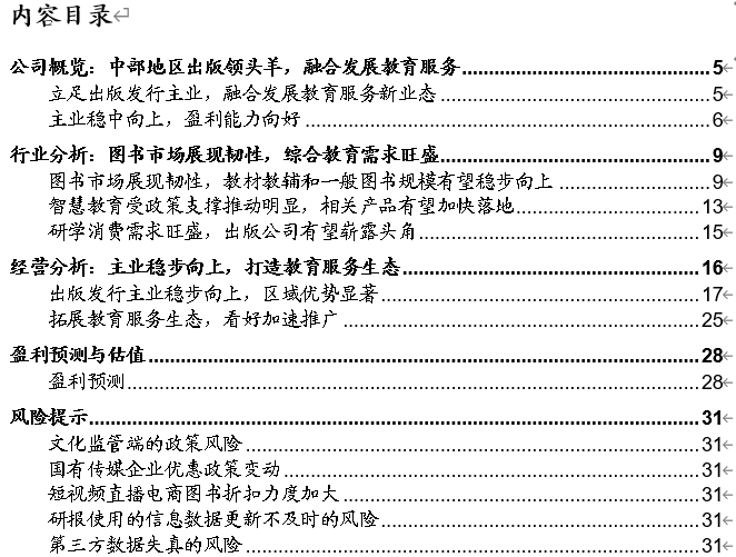 公司概览:中部地区出版领头羊,融合发展教育服务