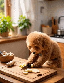 “小猫小狗会做饭就像以前动物园训的猴,咱家小狗训练的狠一点,也能变成这样。”