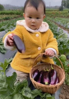 在“小孩做饭”的视频底下下,穿纸尿裤的婴儿能去独自地里摘茄子、把菜洗干净。