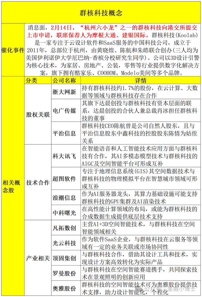 杭州概念股!群核科技赴港上市(附最全群核科技概念股名单)