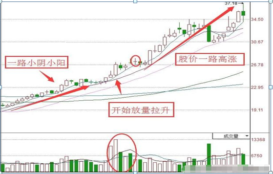 【技巧五:小阳放量滞涨法】