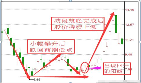 当一只股票处在波段的底部的时候,如果出现从起涨点至高点再回落至前期起涨点附近,K线组合图形就像是一扇“大门”,此时,若出现回升的阳线,可考虑跟进。