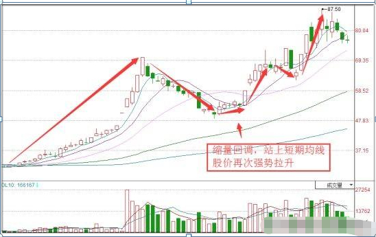 该股属于前期强势股,大幅回落后在处于缩量调整期,量能大幅缩小,逐步站上短期均线,随后再度开启上攻行情创出新高。