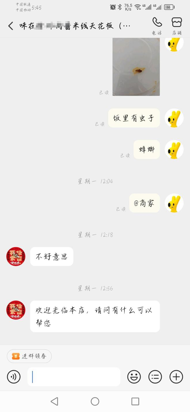 随后,小雪按照美团上留下的联系方式,给餐馆老板打电话,结果打了两个电话,都没有人接听。最后好不容易接通,餐馆老板说过会处理,结果几天过去,也没有后续。