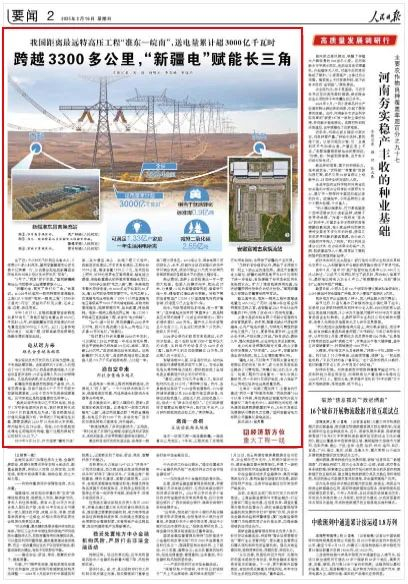 3300多公里的“电力天路”,靠一条条粗如手臂的导线连接,由6000多座平均高达80多米、重180吨的铁塔架在高空中。电气工程上,交流输电电压等级高于1000千伏和直流输电电压等级高于±800千伏的输电线路,被称为特高压输电,能够提高功率、延长距离、降低损耗。准东—皖南工程是世界上第一条±1100千伏特高压直流输电工程,被誉为“电力珠峰”。