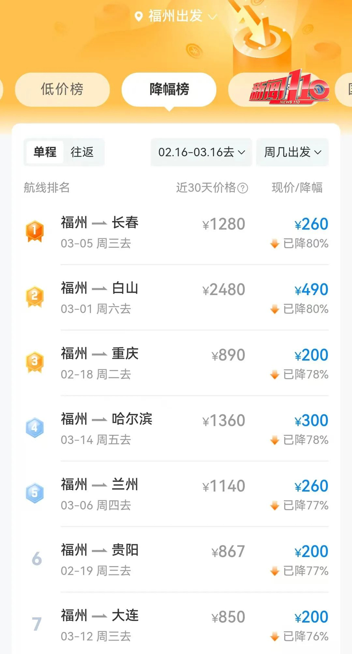 “看到想去的目的地机票降价,已经在安排错峰出游了。”福州网友刘女士表示。