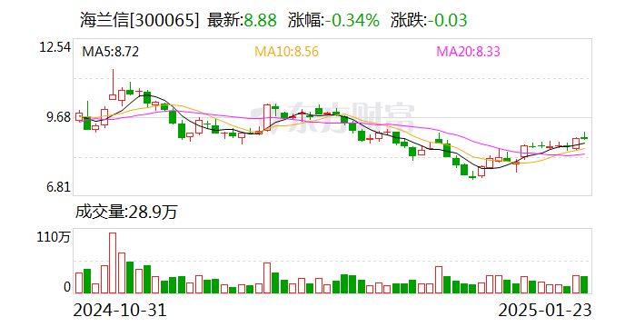 海兰信自1月24日开市起停牌,计划自2月17日开市起复牌。截至1月23日收盘,公司股价报8.88元/股,总市值为63.98亿元。截至2024年9月30日,公司股东有4.571万户。