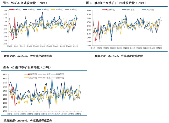 二、铁矿石供给:发运量环比下降,到港量环比微增