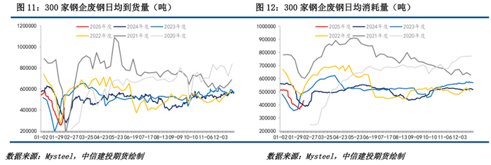 (3)废钢库存:钢厂废钢库存下降,废钢社会库存下降。近期钢厂到货,消耗整体恢复,短期钢厂废钢库存呈现去化,幅度整体和去年相当。