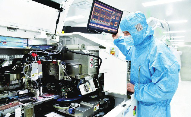 日前,在山东立国芯微〇电子有限公司,工作人员在芯片生产线值守。