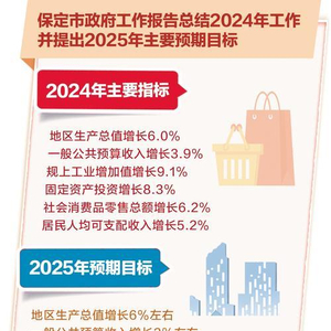 围绕加强医疗、养老等公共服务共建共享,保定市政府工作报告提出,今年要紧盯国际医疗基地“一号工程”,广安门医院保定医院、北京儿童医院保定医院正式运营。发展银发经济,打造一批养老示范项目,吸引更多京津群众到保定旅居康养。