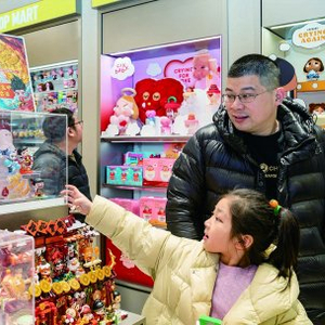 不仅仅是电影票房踩上“风火轮”,随着“百亿影帝”炼成,哪吒系列周边也成为开年第一爆款“国谷”。在南京市场,盲盒、徽章(“吧唧”)、透卡等哪吒“谷子”(源自“goods”音译,指IP衍生周边)一派热销,部分产品甚至“一吒难求”。