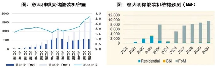 长期来看,意大利制定了11GW的大储目标;并推出MACSE机制来解决间歇性可再生能源发电的问题,该将为南部和岛屿上的项目提供负荷转移合同,有助于支持这些地区密集的可再生能源推广,并帮助向北方的需求中心输送,MACSE将在2025年启动其第一轮拍卖,大储需求有望成为意大利储能市场增长主力。