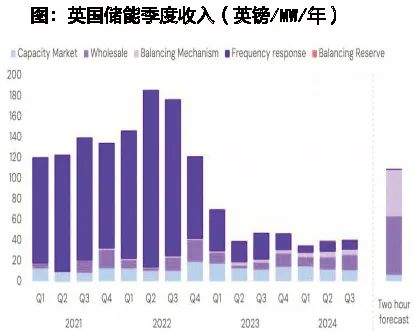 价格维度:频率市场的饱和导致2024年英国电池储能单季收入有所下滑;展望后续电价差提升有望使得储能季度收入提升1倍。由于频率响应市场趋于饱和,2024年英国的电池储能收入比2022年初的峰值下降约60%,交易策略逐渐转向批发市场和平衡机制。根据Modo Energy,随着燃煤发电厂的退役、天然气价格上涨以及对风力发电的依赖导致的电价差提高,预计英国储能市场季度收入将提至平均110英镑/MW/年,接近2022年峰值的50%,但较目前的单季收入高出1倍。