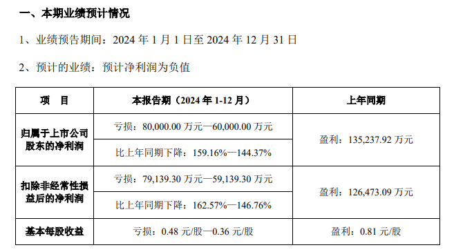 2024年度业绩预告显示,以岭药业预计2024年归属于上市公司股东的净利润(简称“净利润”)将亏损6亿元至8亿元。预计2024年扣除非经常性损益后的净利润(简称“扣非净利润”)将亏损5.91亿元至7.91亿元。