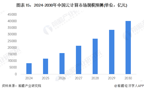 根据中国信通院数据预测,伴随着经济回暖,我国云计算市场将继续保持快速发展态势,预计2025年市场规模将突破1万亿元。前瞻进一步测算,2030年中国云计算的市场规模将超过4万亿元。