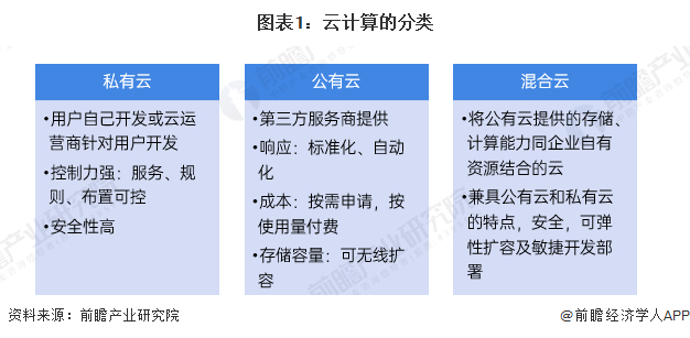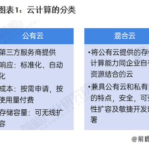 按后台位置划分,云计算主要分为公有云、私有云和混合云三种形态。公有云,指基础设施由某一组织所拥有,面向公众或某一行业提供云计算服务的部署模式;私有云,是将云基础设施与软硬件资源部署在内网之中,供机构或企业内各部门使用的云计算部署模式。混合云指,同时部署公有云和私有云的云计算部署模式。