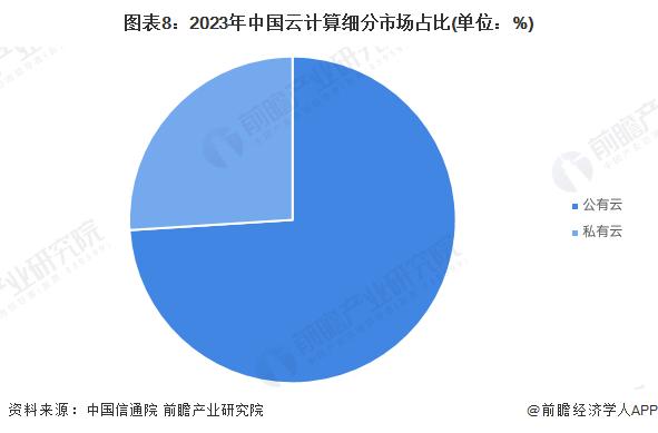 从细分市场来看,公有云是目前国内云计算的主要服务形式,2023年公有云市场规模增长至4562亿元,占比超过七成;私有云市场占比不足三成。