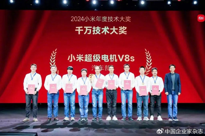 这次获得一等奖的,便是由严忆泉领衔的小米超级电机V8s团队。雷军在颁奖现场表示:“我们对技术创新的激励不设上限,更希望‘千万技术大奖’能成为持续深层次创新的助推器。”