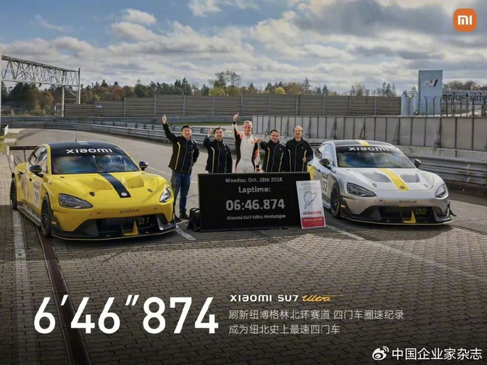 自宣布造车后,雷军心中就一直有一个向往的圣地——纽博格林北赛道。为此,雷军和小米汽车团队筹备了3年。上赛道之前,他们的内心都是忐忑的。最终,小米SU7 Ultra原型车以6分46秒874的圈速成绩,击败了保时捷Taycan,成为纽北史上最速四门车。