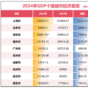 2024全年,随着唐山的晋级,万亿GDP城市数量增加至27个。佛山全年GDP规模13361.9亿元,增量38.13亿元,增速1.3%。