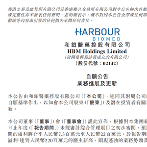 2 月 14 日,和铂医药发布公告,称公司 2024 年溢利(税后利润)为 730 万元至 2200 万元,经营现金净流入 2.2 亿元,创历史新高,显现出蓬勃的业务势头及高运营效率。