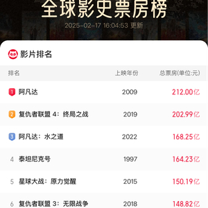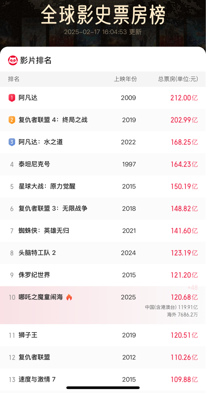 全球影史票房前十!