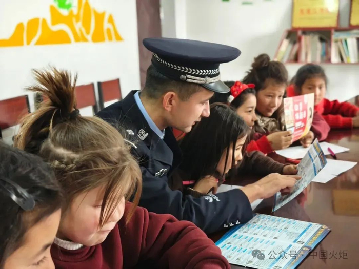 2月14日,阿瓦提县公安局关工委组织民警走进辖区为青少年宣传安全防范知识,在开学前再给同学们讲一次安全。