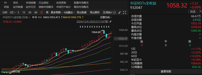 Choice数据显示,截至2月17日午市收盘,中证REITs全收益指数今年以来的涨幅接近10%,多只REITs产品上涨超过20%。其中,华夏深国际REIT、中航京能光伏REIT、中金山东高速REIT、易方达深高速REIT、易方达华威市场REIT等多只产品的二级市场价格于2月17日创历史新高。