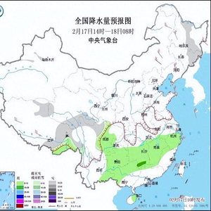图1 全国降水量预报图(2月17日14时至18日08时)