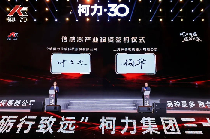 在30周年庆典现场,柯力传感与上海开普勒机器人有限公司、浙江博远电子科技有限公司、沈阳东大传感技术有限公司3家被投企业正式签约。至此,柯力传感战略投资企业增至30家。