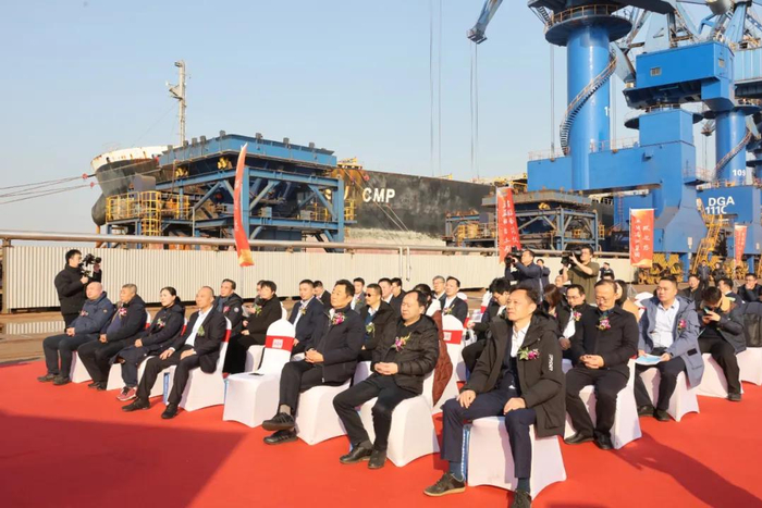华江在致辞中介绍,江阴港作为长江三角洲地区的重要枢纽港口,是海进江、江出海、江海河联运的重要港口和国家布局的外贸进口铁矿石重要的接卸港,始终秉持“开放、合作、共赢”的理念,长期致力于为国内外客户提供高效、便捷、优质的港口服务。此次博赛集团首船圭亚那铝土矿的成功到港,不仅是江阴港与博赛集团深化合作的重要里程碑,更是江阴港与博赛集团共同推动长江经济带高质量发展的生动实践。下一步,江阴港与博赛集团的合作必将结出更加丰硕的成果,为区域经济发展和行业进步作出更大的贡献。