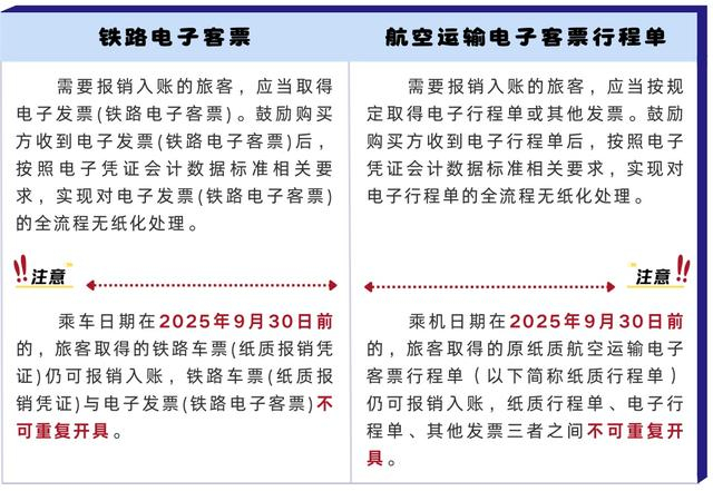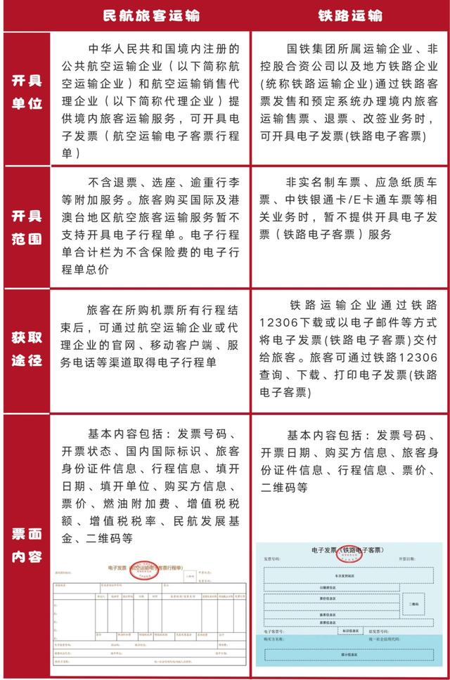 都是数电发票,铁路电子客票和航空运输电子客票行程单有啥异同点?