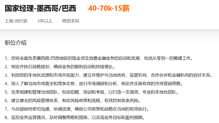 从招聘网站的信息来看,追觅科技发布了关于流量商务、贷后、海外商务负责人等在内的大量招聘需求。除了中国,追觅还计划在东南亚、拉美、中亚等国家与地区开展信贷业务。