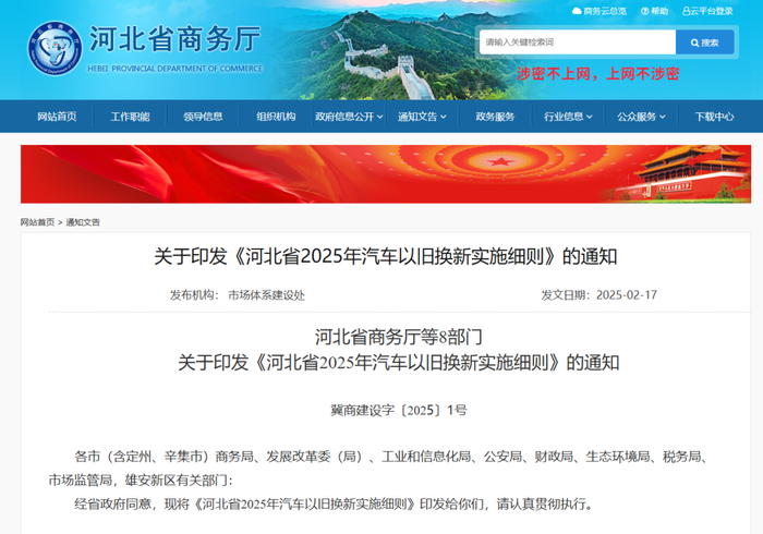 今天河北省商务厅官网发布了