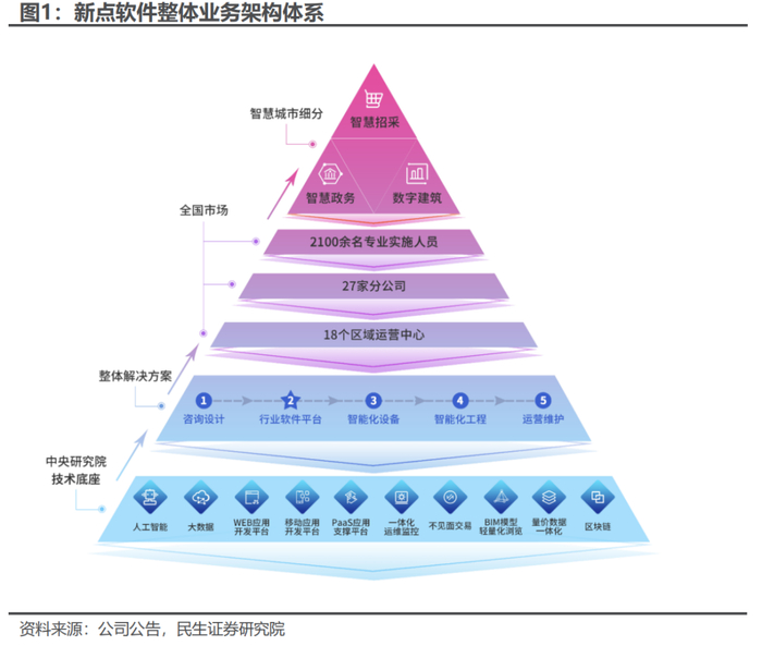 AI赋能三大业务板块,稀缺的“产品型”IT厂商。新点软件聚焦智慧招采、智慧政务、数字建筑三大领域,服务于政企客户数字化转型,助力国家信息化规划的落地实施和持续发展。公司加大拥抱AI力度,构建了MLOps企业级人工智能平台和数字孪生技术体系;深入研究开发行业大模型和智能Agent框架,并将大模型技术与公司业务场景相结合,进行验证和落地应用。
