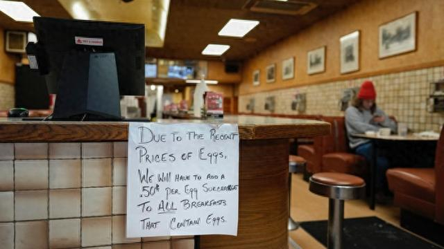 蛋价持续走高和“蛋荒”的影响持续蔓延。肯塔基州纽波特一家餐厅内贴着“每个鸡蛋多收0.5美元”的告示。纽约布鲁克林一家餐厅含蛋餐点占菜单近一半,过去每天要消耗数百个鸡蛋。餐厅经理表示,蛋价上涨给经营带来巨大压力。顾客克拉布表示,他和儿子的早餐预算已经从原来的20美元涨至27美元。