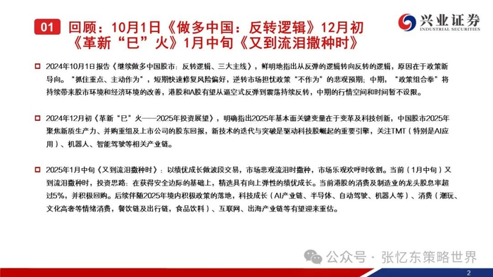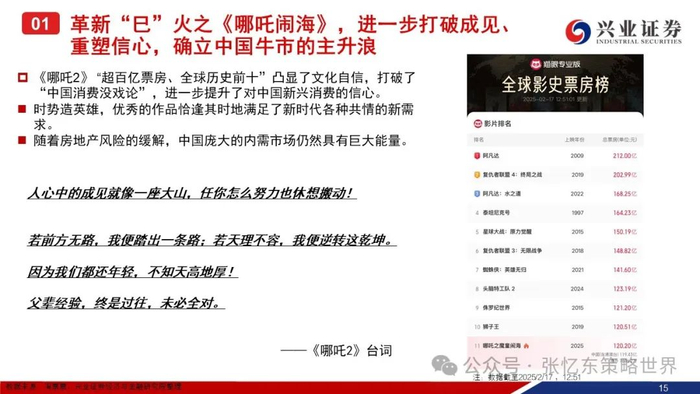 《逐浪前行:“革新牛”主升浪下的轮动和波动 》 对外发布时间:2025年2月17日 报告发布机构:兴业证券股份有限公司(已获中国证监会许可的证券投资咨询业务资格) 本报告分析师 : 张忆东 SAC执业证书编号:S0190510110012 SFC HK执业证书编号:BIS749 李彦霖 SAC执业证书编号:S0190510110015 请注意:李彦霖并非香港证券及期货事务监察委员会的注册持牌人,不可在香港从事受监管活动。 |