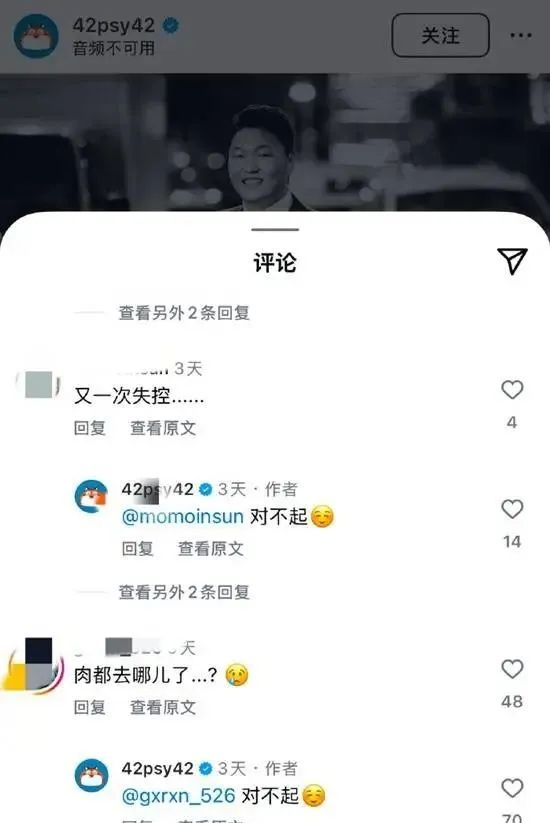 许多粉丝玩笑评论PSY无法保持体重,作为回应,PSY也一直在社交媒体上向粉丝们道歉。当然,也有粉丝问道:“你为什么要向所有人道歉?” PSY回答:“因为他们不希望我减肥。”