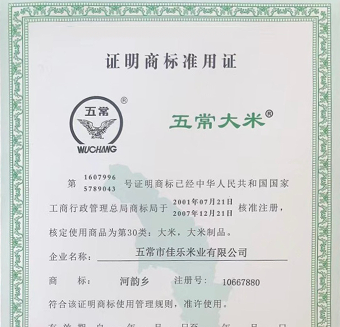 在地理标志网中可查,可以在使用核准使用地理标志产品专用标志企业名单中,五常市佳乐米业有限公司为使用五常大米商标第一批次单位!