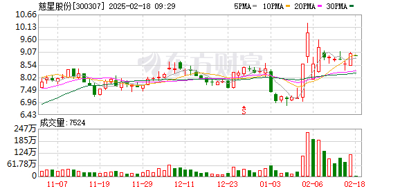 截至2月17日收盘,慈星股份报9.00元/股,收涨4.90%。