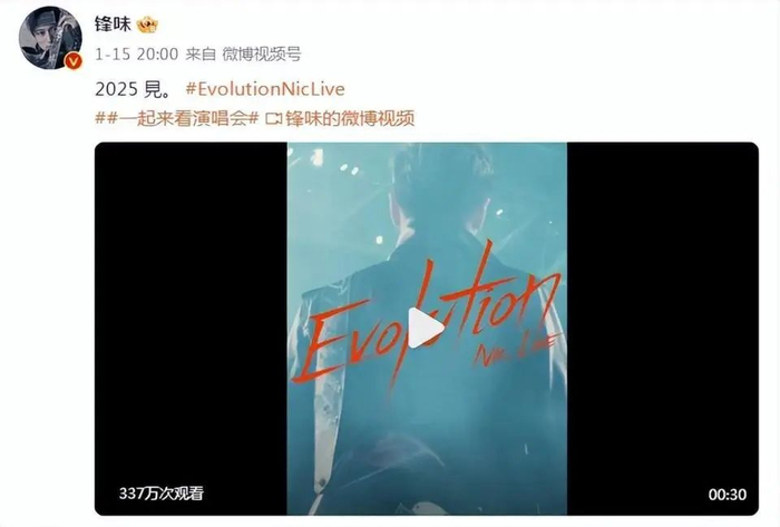 谢霆锋早前宣布将举行《Evolution Nic Live谢霆锋进化演唱会》,并发布以香港启德体育园为背景的演唱会海报。不少歌迷激动留言,“等足25年终于等到!”“有生之年终于等到你!”“真心满满回忆杀”。
