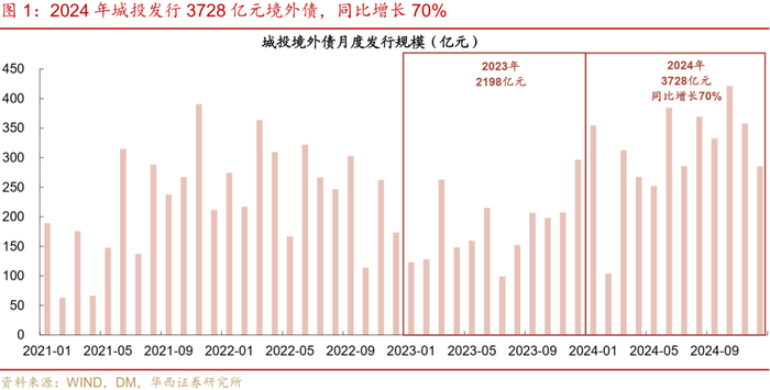 考虑到当前城投境内债置换境外债的节奏仍偏慢,2025年到期大概率还在境外滚动。假设2025年新增债发行规模与去年持平,叠加再融资债规模,预计2025年境外债发行或突破4500亿元。节奏上,2025年境外债到期主要集中在三季度之前,3-4月、6月、9月偏多。
