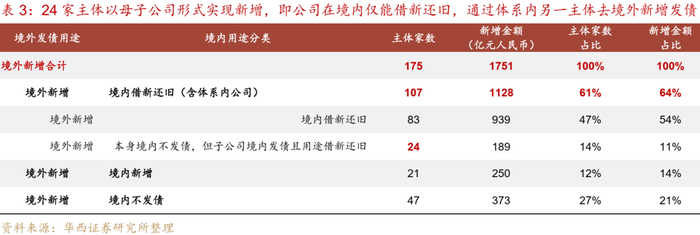 1.2 境外新增,对应主体境内不发债,体系内子公司境内发债,用途借新还旧