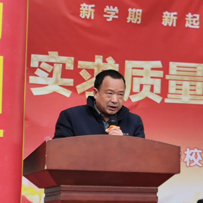 陈伟校长发表新学期致辞。他回顾过去一年学校在教育教学、校园文化建设等方面取得的斐然成绩,对全体师生的辛勤付出表达诚挚感谢。同时,校长着眼新学期,以“务实求质量,拼搏谱新篇”为指引,鼓励同学们学习上如“千淘万漉虽辛苦,吹尽狂沙始到金”般脚踏实地,注重知识积累与能力提升;期望老师们以“随风潜入夜,润物细无声”的精神,不断提升教学水平,满怀热忱投入教育工作。