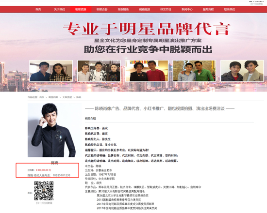 据公开信息显示,陈晓的出场费报价为80万元,陈妍希为70万元。