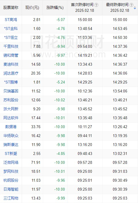 截至收盘,全市场共21只个股跌停,除ST个股外,大多是蛇年以来飙涨的DeepSeek及相关概念股。