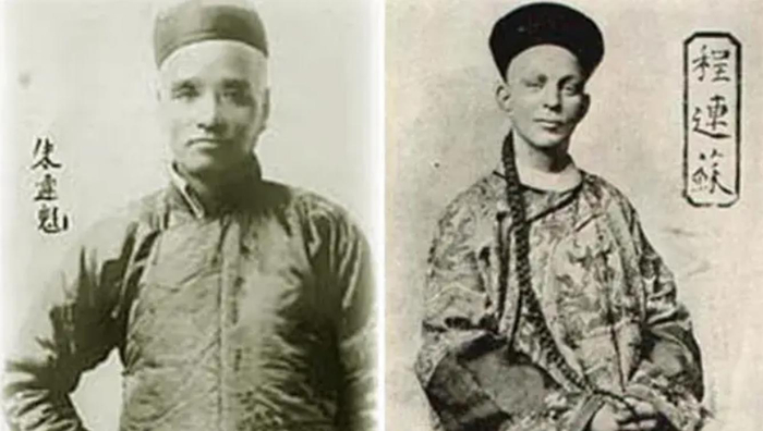 中国魔术师朱连魁(左)和模仿他冒充中国人的美国魔术师“程连苏”(右)